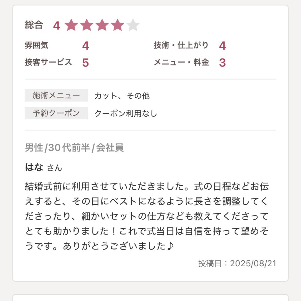 結婚式/三重県津市美容室/口コミ