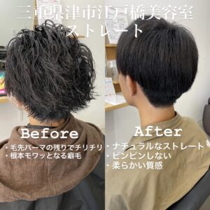 パーマ落とし×毛流れストレート施術例/三重県津市美容室