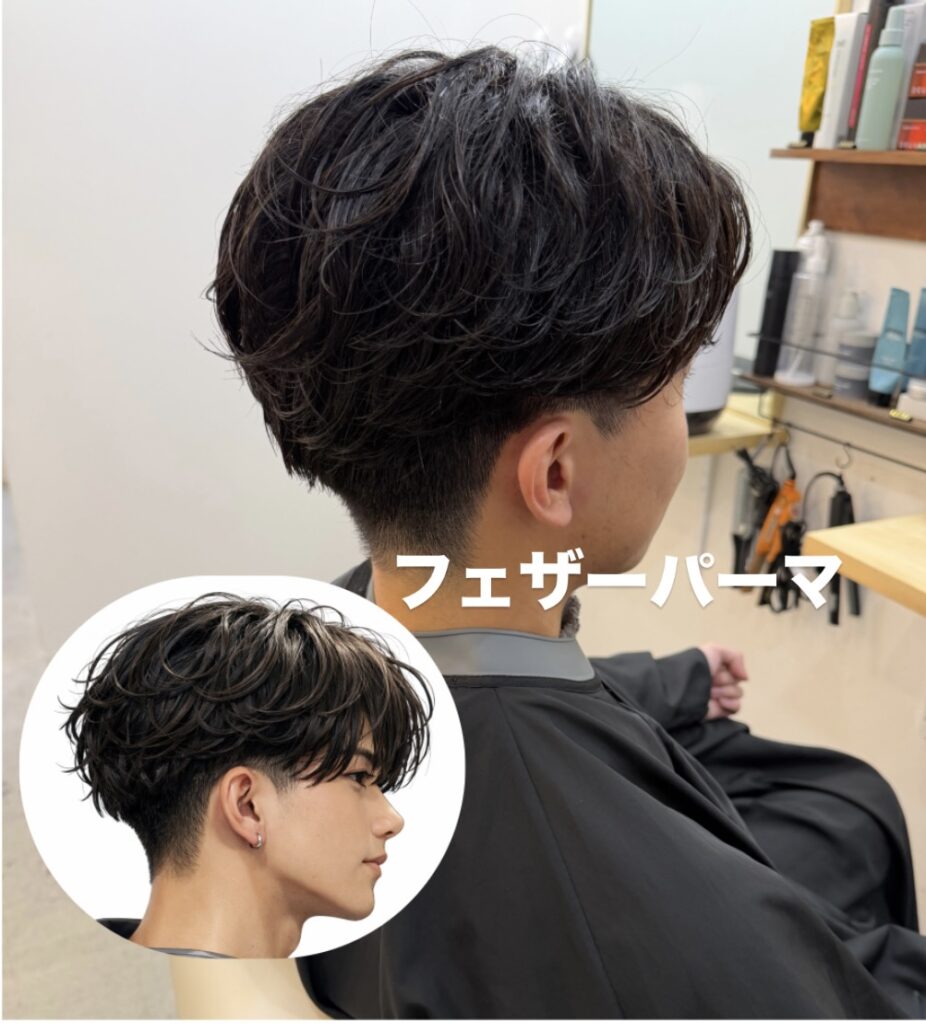 フェザーパーマ。かっこよく決めたい方におすすめ♪フェザーパーマはセットが簡単なので誰でも簡単に再現可能です♪