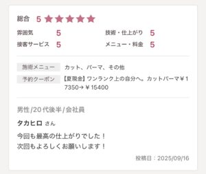 ・パーマが落ちやすい方は1~2ヶ月周期。パーマが残りやすい方は2~3ヶ月周期。