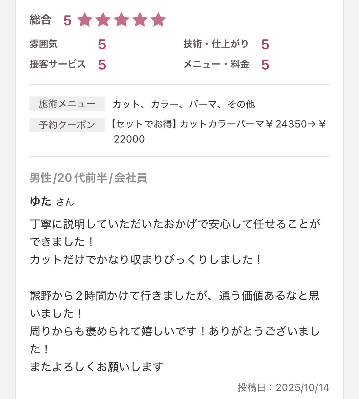 Screenshot口コミ/美容室/メンズカット/メンズパーマ/メンズカラー