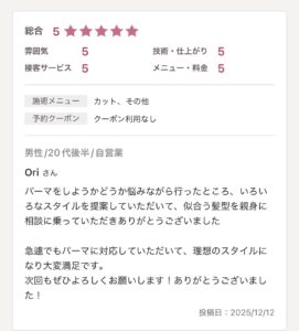 次回もさらにご満足いただけるよう、しっかり担当させていただきます✂️