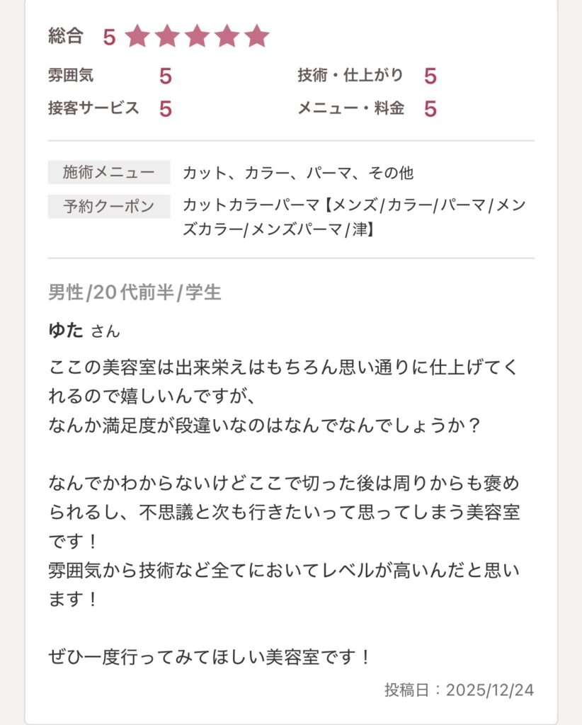 津美容室/津市美容室/口コミ